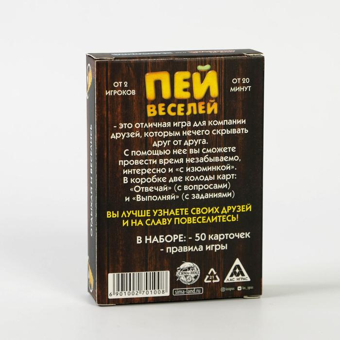 Купить игра для компании "пей веселей" 50 карт от 180 руб. с доставкой до пункта выдачи в Люберцах. Интернет магазин ДекаМаркет. Оплата при получении.