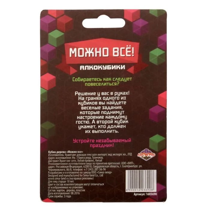 Купить кубик "можно все", алкокубики для принятия решений от 60 руб. с доставкой до пункта выдачи в Люберцах. Интернет магазин ДекаМаркет. Оплата при получении.